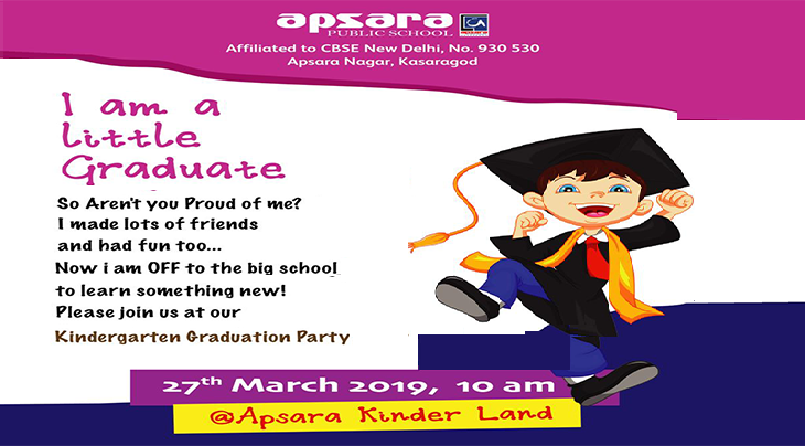 WE PROUDLY INVITE ALL OF YOU FOR THE KINDERGARTEN GRADUATION PARTY .THE FUNCTION WILL BE ON 27TH MARCH 2019, 10 AM AT APSARA KINDER LAND